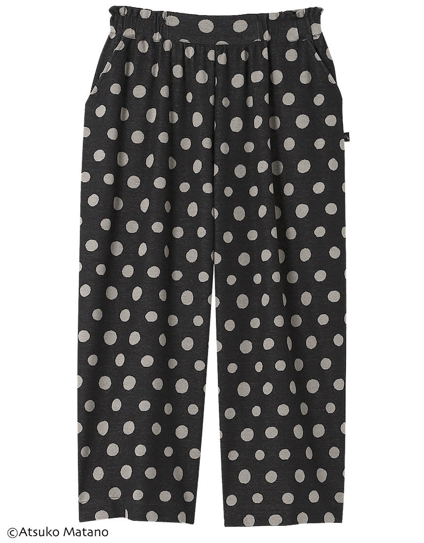 【ボトムス(9分丈パンツ)】クリエーター"俣野温子"氏がデザインする、甘くなりすぎない大人かわいいテキスタイルとカラーで、くつろぎ時間を楽しく過ごせるパジャマ&ルームウェア綿100%のジャカード素材。大人っぽいシンプルなモノトーン柄のテキスタイル。【サイズ詳細】M:ボトム脇丈89.0cm 裾まわり55.5cm ウエスト62.0cm ヒップ134.0cm 股下(レングス)55.0cm L:ボトム脇丈89.5cm 裾まわり57.5cm ウエスト67.0cm ヒップ138.0cm 股下(レングス)55.0cm LL:ボトム脇丈90.0cm 裾まわり60.5cm ウエスト72.0cm ヒップ143.0cm 股下(レングス)55.0cm※出来上がり寸法を表示しております※サイズ詳細の寸法には多少の差異がございます出来上がり寸法の測り方についてはこちら※アイテムによって柄の出方が異なりますのでご了承ください。