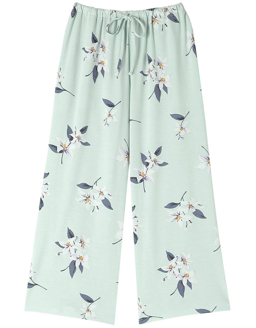 【ボトムス(9分丈)】ワコール「眠り」や「くつろぎ」の時間を自分らしく、ここちよく、美しく過ごすこと。それが、笑顔で朝を迎えられ、「キレイ」でアクティブな明日への時間へつながる。そんな思いをこめてつくられたパジャマとルームウェアです。ストレッチ性がありドレープが美しいベア天竺素材です。アロマの香りをイメージした花柄プリント。上品なリラックス感漂うワイドシルエットのボトム。※アイテムによって柄の出方が異なりますのでご了承ください。【サイズ詳細】M:ズボン脇丈87.0cm ウエスト58.0cm L:ズボン脇丈87.5cm ウエスト63.0cm LL:ズボン脇丈88.0cm ウエスト68.0cm※出来上がり寸法を表示しております。※サイズ詳細の寸法には多少の差異がございます。出来上がり寸法の測り方についてはこちら