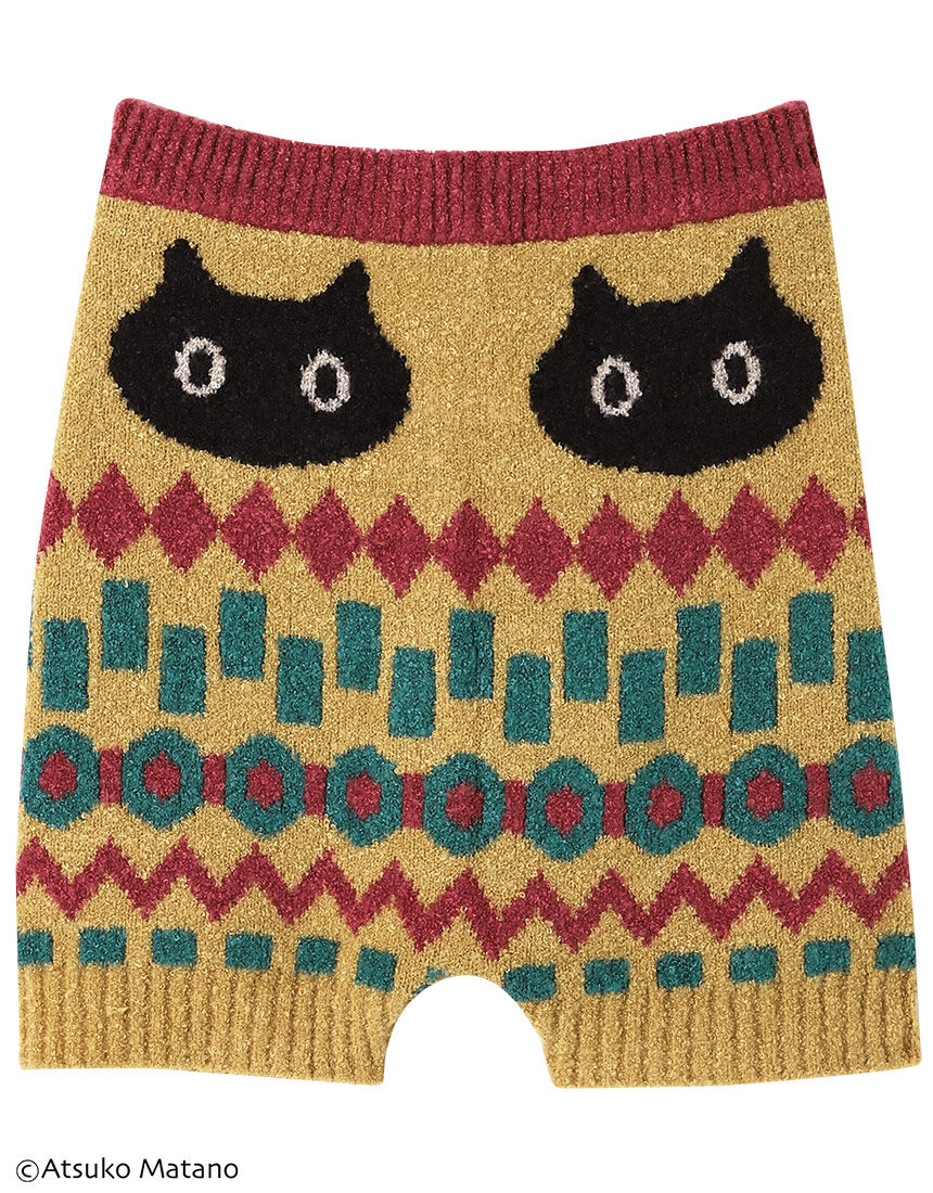 【ボトムス(毛パン)】クリエーター"俣野温子"氏がデザインする、甘くなりすぎない大人かわいいテキスタイルとカラーで、くつろぎ時間を楽しく過ごせるパジャマ&ルームウェア黒猫と幾何学模様をジャカードで表現。寒い冬にピッタリなアイテム。※アイテムによって柄の出方が異なりますのでご了承ください。