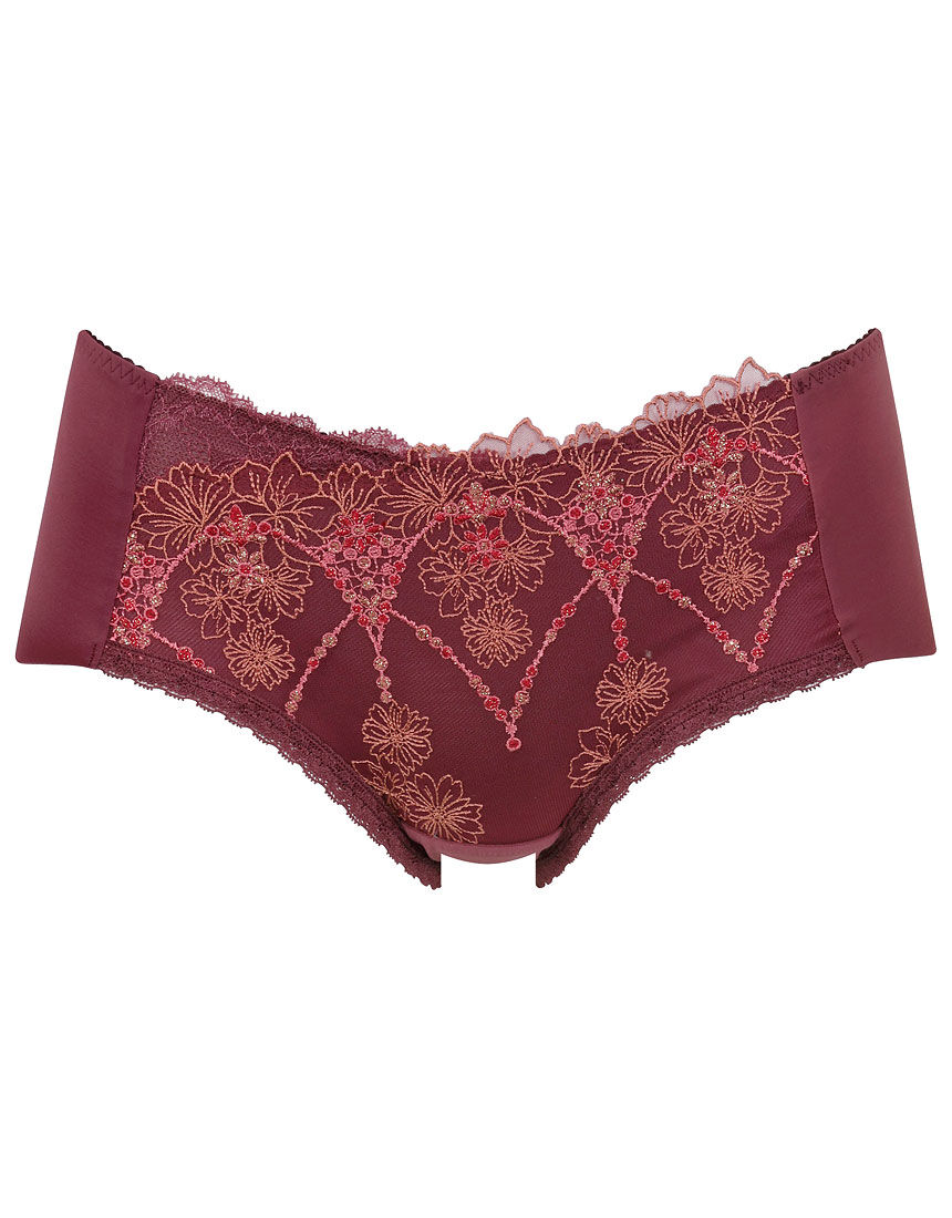 世界の国をイメージした花のエンブロイダリーレースをほどこしたグループ。色ごとに柄の違うレースで様々な表現をしました。・激動の人生を生きた画家の故郷、南米のダリアをイメージしたカラー【BLカラー】・北米のメープル街道のサトウカエデをイメージしたカラー【ENカラー】・「fika(フィーカ)」をイメージし、のんびり余裕のある雰囲気でイトシジャンを刺繍したカラー【GBカラー】・メルヘンを愛する北欧の国をイメージし、可憐なマーガレットを大人可愛く表現したカラー【GYカラー】・日本の白無垢をイメージし、控えめに光る金糸がポイントのカラー【IVカラー】・黄色いハイビスカス(マオ・ハウ・ヘレ)をイメージし、キルトのようなレースデザインに仕上げたカラー【YEカラー】のカラー展開。●エンブロイダリーレースを前身頃にほどこしたショーツ。●後ろ身頃には吸汗速乾の伸びのよい素材を使用しています。●裾はレース使いで、アウターにひびきにくいデザインです。