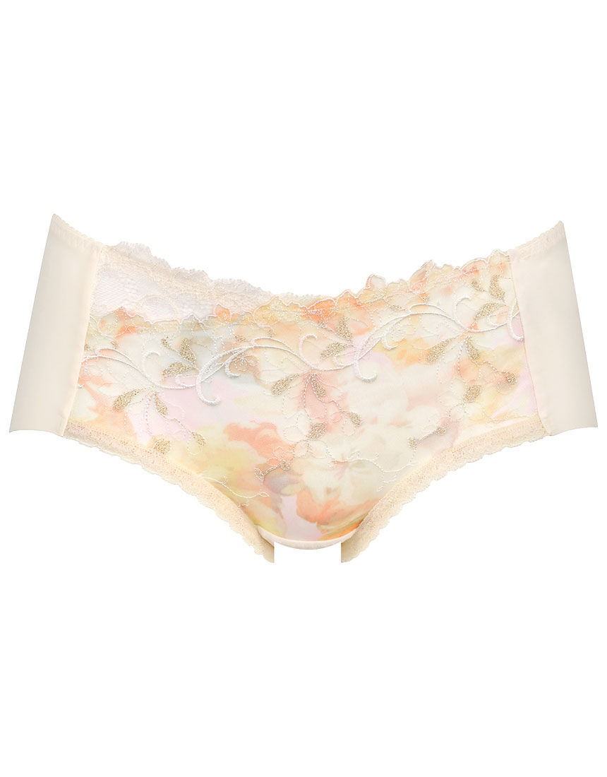 【28group】透明感のある繊細なレースにキラキラと輝くラメをちりばめ、空気が色づいたような、やわらかな光を表現しました。軽やかなここちよさや香り立つエレガンスを感じていただけるデザインに仕上げています。カラーバリエーションは、季節のあゆみとともに変化する光をイメージしています。●しなやかになじむはきごこち ストレッチ性のある薄くて軽いベアスムース素材を使用●汗のにおいをおさえる 身生地は汗消臭機能のある素材を使用●アウターにひびきにくい 後ろ裾はフリーカッティング素材で肌にくいこみにくい・透明感のある繊細なレースをあしらった、軽やかでエレガントなデザイン・レースにほどこした、やわらかな光をイメージした箔プリントの上品なキラキラ感がポイント・はきこみ丈:あさめショーツの種類(ウエスト位置、裾ライン位置)についてはこちら をご覧ください。