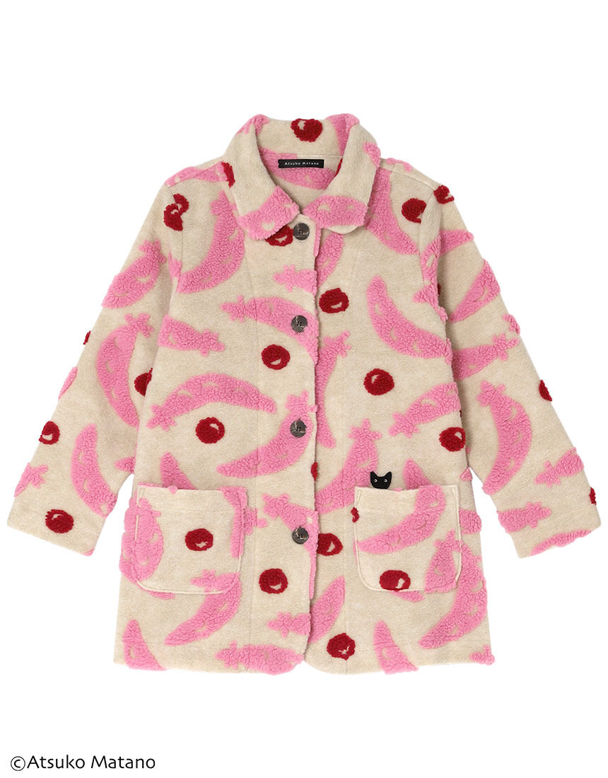 【トップス(ロング袖)】クリエーター"俣野温子"氏がデザインする、甘くなりすぎない大人かわいいテキスタイルとカラーで、くつろぎ時間を楽しく過ごせるパジャマ&ルームウェアボアジャカードで大きなグリーンピースのモチーフを立体的に表現。ポケットから顔をのぞかせている黒猫のアップリケがデザインポイント。お散歩などのちょっとしたお出かけのときにも便利な、冬に重宝する一着。【サイズ詳細】M:身幅55.0cm 着丈75.0cm 身丈78.0cm 肩幅42.0cm 袖丈56.0cm L:身幅59.0cm 着丈75.0cm 身丈78.0cm 肩幅43.5cm 袖丈56.0cm※出来上がり寸法を表示しております※サイズ詳細の寸法には多少の差異がございます出来上がり寸法の測り方についてはこちら※アイテムによって柄の出方が異なりますのでご了承ください。