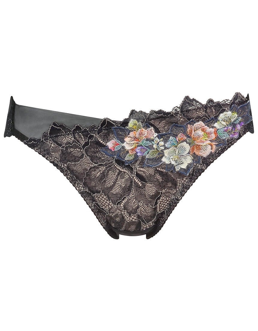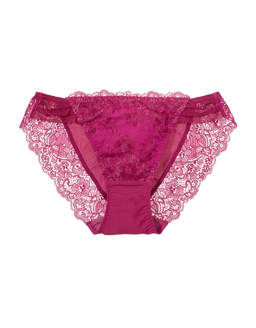 両サイドはタックを寄せたストレッチチュールで、クチュールドレスのようなゴージャスさ。フロントはストレッチレースにコットン混生地を裏打ちして透けにくい仕様。バックは肌ざわりがソフトで気持ちいいピーチスキン生地で、全体に優しくフィットします。バック脚ぐりにはストレッチラッセルレースを贅沢にあしらい、洋服にラインが響きにくい。