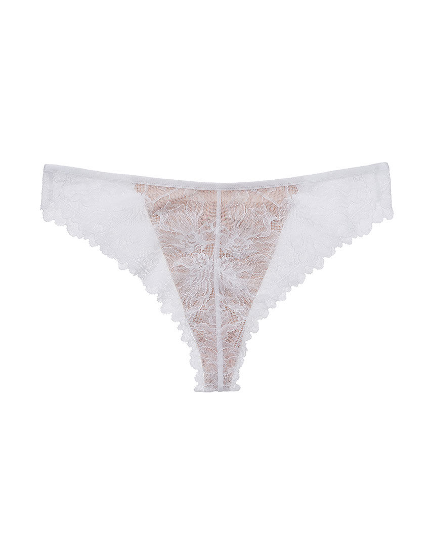 花々を連ねたスカラップが美しいレースをフルに使用。バックもレースの面積が広く、贅沢なTバックショーツ。フロント中央はヌーディカラーの生地を裏打ちして透けにくいつくり。バック上部をV型にカットし、スカラップとゴールドのパーツでつないだセンシュアルなデザイン。後ろ姿を魅惑的に引き立てます。【大人の人生は、もっと輝く。 -SALON by PEACH JOHN- 】自分らしく人生を楽しむ大人世代へ向けたランジェリー、リラックスウエアのブランド。女心がときめく洗練されたデザインと、体型の悩みや着け心地といったリアルなニーズに応えた機能性で、心にも贅沢をお届けします。