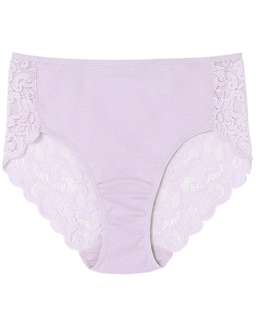フランス製のレースをあしらったエレガントな雰囲気のショーツ。フロント部分はシルケット加工をほどこしたシルクのような光沢を持つコットンを使用。バックは優美な総レース仕立てでアウターにひびきにくい。※掲載サイズは輸入元サイズです。必ず、ページ内に掲載しているサイズ表をご確認ください。