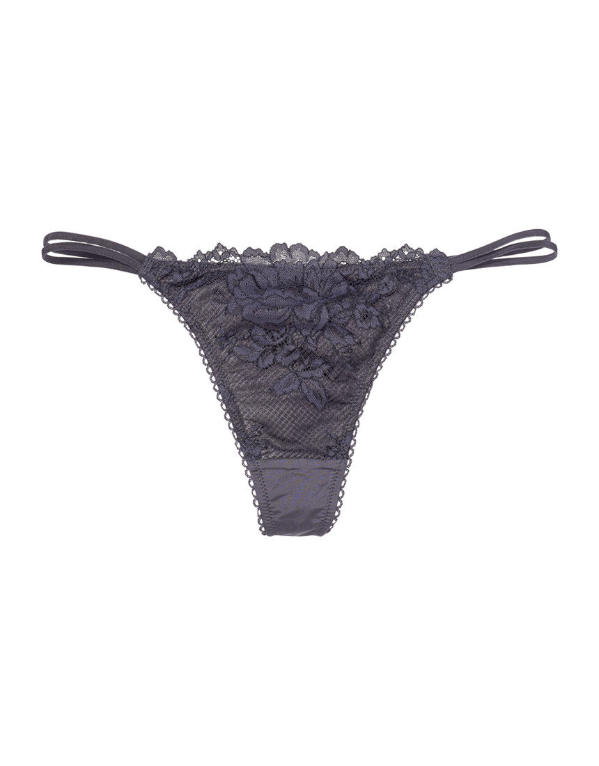 【フロント】・大輪の花柄レースに薄手の生地を裏打ちして透けにくい。・サイドは、伸縮性のある華奢なWストリング。【バック】・面積広めのストレッチ生地に、波型のストレッチレースをトリミング。・くい込みにくく優しいフィット感なので、Tバックショーツにあまり慣れていない方にもおすすめ。【はき込み】・ローライズ(浅め)